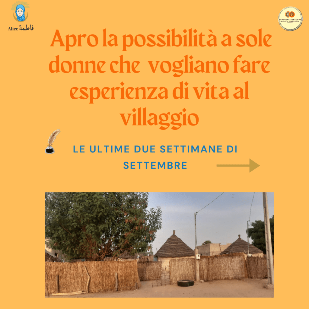 Il primo riguarda la preparazione del mio viaggio in Senegal nei mesi di agosto e settembre. Come vi ho scritto la volta scorsa, durante il mese di settembre accoglierò al villaggio di mio marito un piccolo gruppo di donne che vivranno con me un’esperienza unica ed autentica. Proprio in questi giorni sto avendo i colloqui con le prime interessate, colloqui che continueranno fino alla fine di aprile.