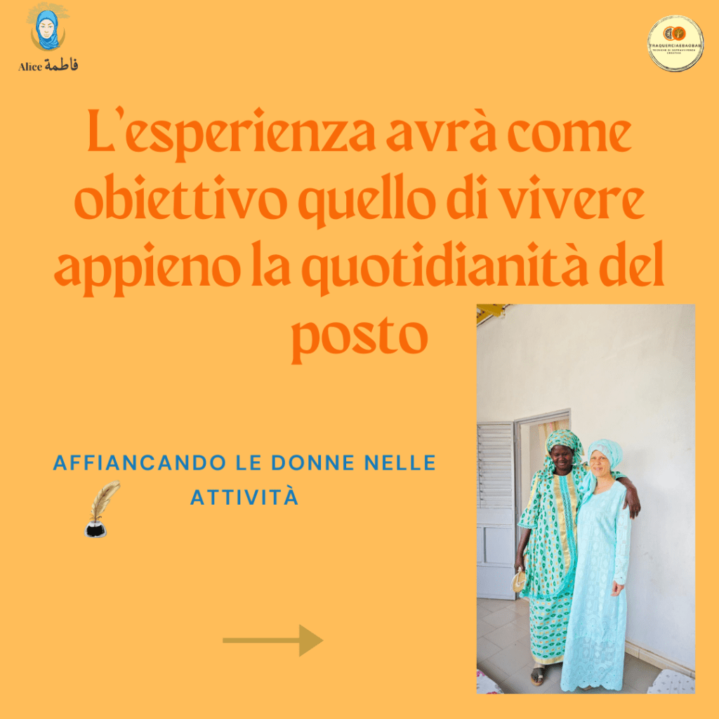 L’esperienza avrà come obiettivo quello di vivere appieno la quotidianità del posto affiancando le donne nelle loro attività quotidiane: lavoro nei campi, cucina, mercato, pranzi e cene condivisi, scambi sulle reciproche culture.