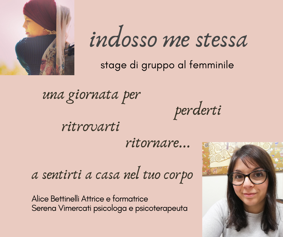 Come? Attraverso un laboratorio al femminile (salutiamo tutti gli uomini presenti e li aspettiamo alla prossima tappa) che si svolgerà nel corso di una intera giornata, dove attraverso le pratiche corporee provenienti dal teatro (che porterò io) e la creatività della dottoressa Serena Vimercati, psicologa e psicoterapeuta, proveremo a lasciare andare le nostre insicurezze per darci il permesso di indossare noi stesse...almeno per un giorno!