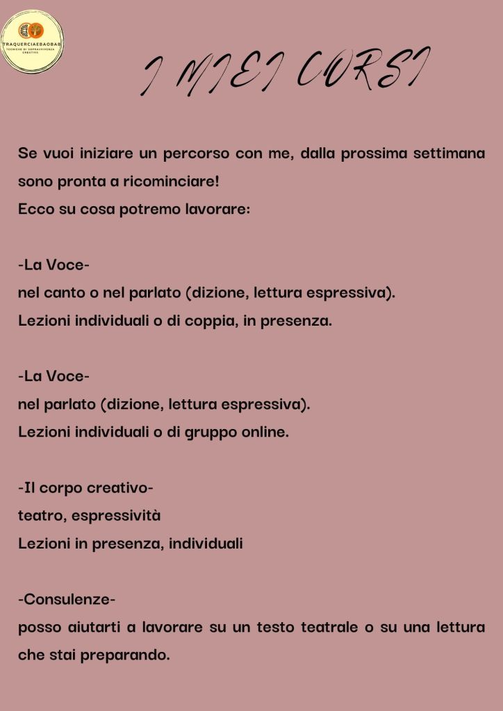 Già disponibili ci sono i pacchetti di lettura espressiva online o in presenza: modulo base(5 incontri), secondo modulo (6 incontri), modulo tecnico (5 incontri) a seconda del tuo livello e dei tuoi bisogni.