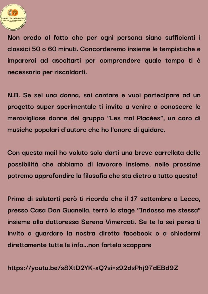 Sono sempre disponibile per i percorsi individuali sulla voce da personalizzare.